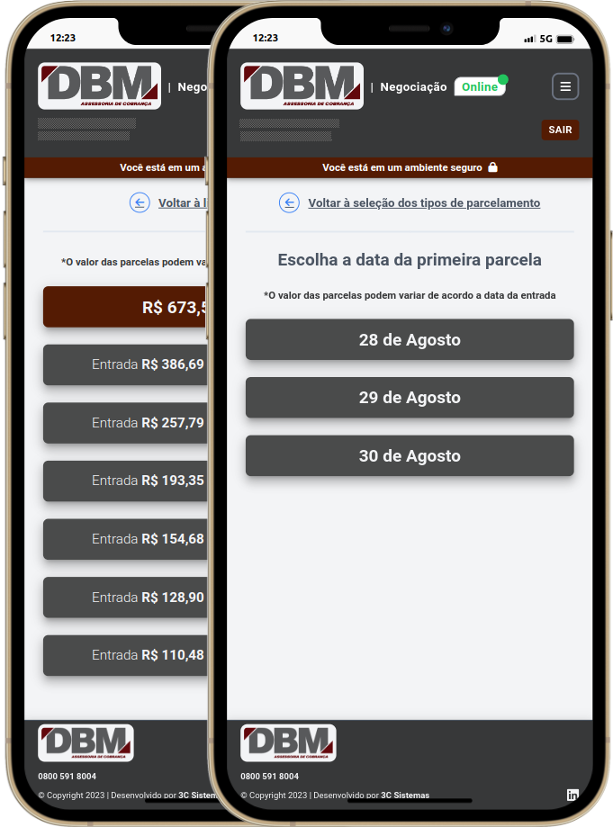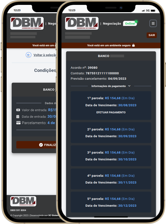 Ao confirmar o seu acordo, você terá opção de baixar o boletos para pagamento.